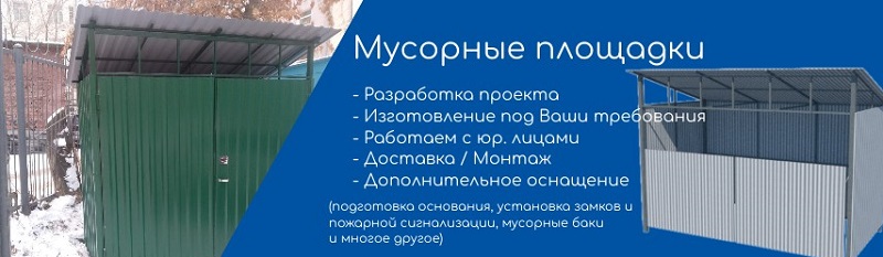Контейнерная площадка для мусора ТКО/ТБО с навесом и воротами для мусорных баков, изготавливаются на производственных мощностях компании ПК "AlPlaza".
