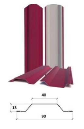 Классический П-профиль. Завальцованные края. Ширина планки 90 мм. Рекомендуемое количество на 1 м.п. забора - 8 шт.