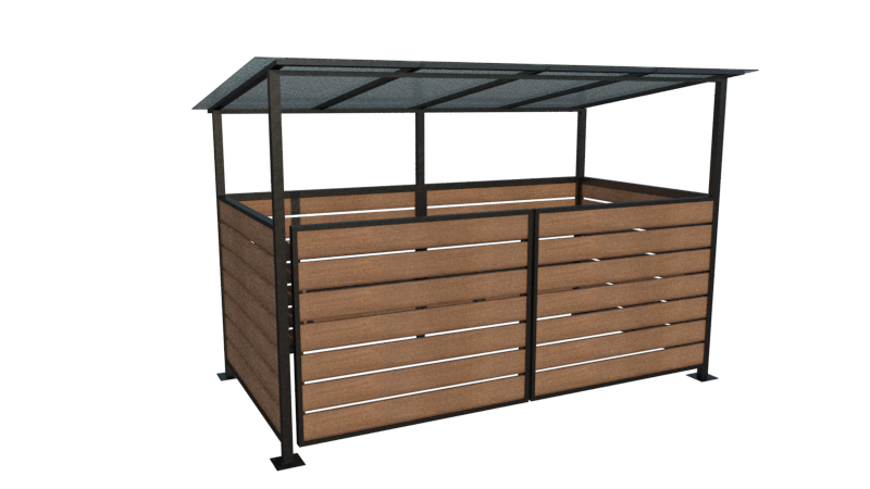 Ограждение для контейнерной площадки серии "FORESTER LITE PLUS" изготавливается из металлического каркаса сечением 50*50*1,5 и 40*20*1,5. Каркас окрашивается полимерно-порошковой краской, цвет можно выбрать по каталогу RAL. Боковые стенки доской из лиственницы покрытой лаком. Цвет так же можно выбрать согласно каталогу. Крепление доски производится при помощи саморезов к каркасу ограждения. Крыша покрыта прозрачным сотовым поликарбонатом толщиной 6 мм. Имеются распашные створки. Крепление ограждения ТБО возможно как к бетонному основанию при помощи анкеров, а также при помощи бетонирования столбов в грунте.
