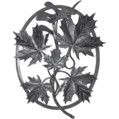 Кованый узор с кленовыми листьями (03.319.08) - это универсальное решение для стильного оформления ворот, калиток, заборов, а также лестничных перил, балконов и оконных решёток. Металлические элементы художественной ковки идеально подойдут для создания изящных композиций в любом стиле, придавая изделиям завершённость и утончённость. Они станут превосходным дополнением для лавочек, беседок и других малых архитектурных форм.