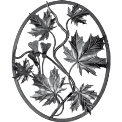 Кованый узор с кленовыми листьями (03.319.09) - это универсальное решение для стильного оформления ворот, калиток, заборов, а также лестничных перил, балконов и оконных решёток. Металлические элементы художественной ковки идеально подойдут для создания изящных композиций в любом стиле, придавая изделиям завершённость и утончённость. Они станут превосходным дополнением для лавочек, беседок и других малых архитектурных форм.