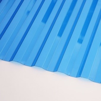 Монолитный гофрированный поликарбонат 0,8 мм Синий – это инновационный материал, который идеально подходит для создания прочных и светопрозрачных конструкций. Его уникальная волнообразная форма (трапеция) обеспечивает высокую жесткость и устойчивость, что делает его незаменимым для кровельных, фасадных и облицовочных работ. В отличие от сотового поликарбоната, монолитный лист не имеет внутренних пустот, что придает ему дополнительную прочность и долговечность.