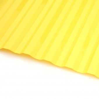 Монолитный гофрированный поликарбонат 0,8 мм Желтый – это инновационный материал, который идеально подходит для создания прочных и светопрозрачных конструкций. Его уникальная волнообразная форма (трапеция) обеспечивает высокую жесткость и устойчивость, что делает его незаменимым для кровельных, фасадных и облицовочных работ. В отличие от сотового поликарбоната, монолитный лист не имеет внутренних пустот, что придает ему дополнительную прочность и долговечность.