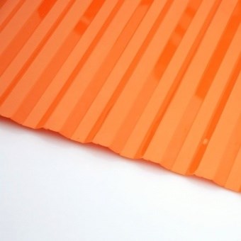 Монолитный гофрированный поликарбонат 1.3 мм Оранжевый – это инновационный материал, который идеально подходит для создания прочных и светопрозрачных конструкций. Его уникальная волнообразная форма (трапеция) обеспечивает высокую жесткость и устойчивость, что делает его незаменимым для кровельных, фасадных и облицовочных работ. В отличие от сотового поликарбоната, монолитный лист не имеет внутренних пустот, что придает ему дополнительную прочность и долговечность.