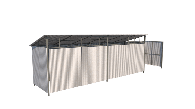 Ограждение для мусорной площадки серии "CITY MAXI" изготавливается из металлического каркаса сечением 50*50*1,5 и 40*20*1,5 мм. Каркас окрашивается полимерно-порошковой краской, цвет можно выбрать по каталогу RAL. Боковые стенки и крыша обшита профлистом МП20. Цвет так же можно выбрать согласно каталогу. Крепление профлиста к каркасу производится при помощи кровельных саморезов. Крепление ограждения ТБО возможно как к бетонному основанию при помощи анкеров, а также при помощи бетонирования столбов в грунте.