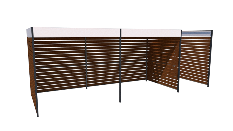 Ограждение для мусорной площадки серии "FORESTER" изготавливается из металлического каркаса сечением 50*50*1,5 и 40*20*1,5 мм. Каркас окрашивается полимерно-порошковой краской, цвет можно выбрать по каталогу RAL. Боковые стенки доской из лиственницы покрытой лаком. Цвет так же можно выбрать согласно каталогу. Крепление доски производится при помощи кровельных саморезов. Крепление ограждения ТБО возможно как к бетонному основанию при помощи анкеров, а также при помощи бетонирования столбов в грунте.