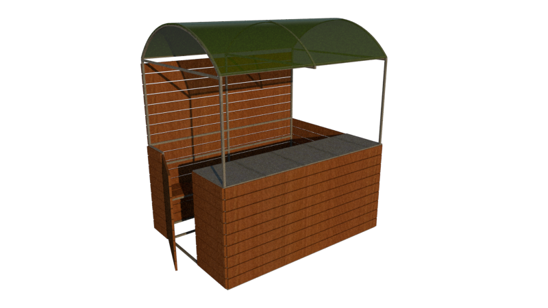 Уличный прилавок серии ПУ изготовлен из металлического профиля сечением 25*25*1,5 мм и окрашен полимерно-порошковой краской. Высота прилавка 1000 мм. Стенка прилавка обшита деревом. Крыша: цветной сотовый поликарбонат толщиной 4 мм. Цвет каркаса и обшивки можно выбрать по каталогу. Уличный прилавок поставляется в разобранном виде. Собирается при помощи кровельных саморезов которые поставляются в комплекте.