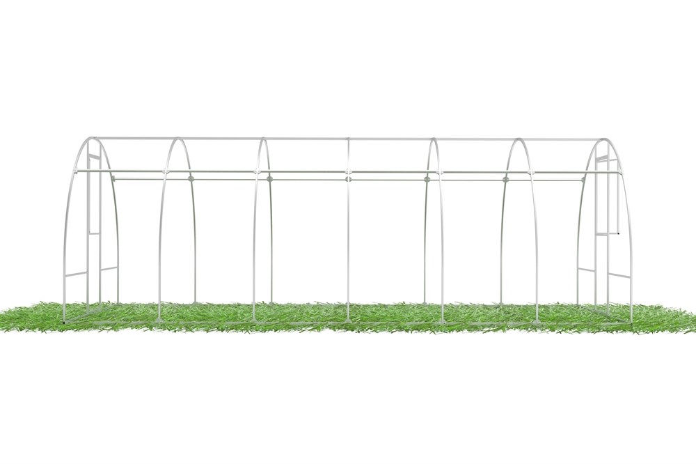 Для дополнительного удобства в каждом конце теплицы есть дверь и окно для вентиляции. Высота теплицы составляет 2,1 метра, а ширина - 3 метра. Стандартная длина рамы составляет 4 метра, но можно приобрести двухметровые удлинители. Длину теплицы можно увеличить, добавив двухметровые вставки, до 6, 8 метров и так далее.