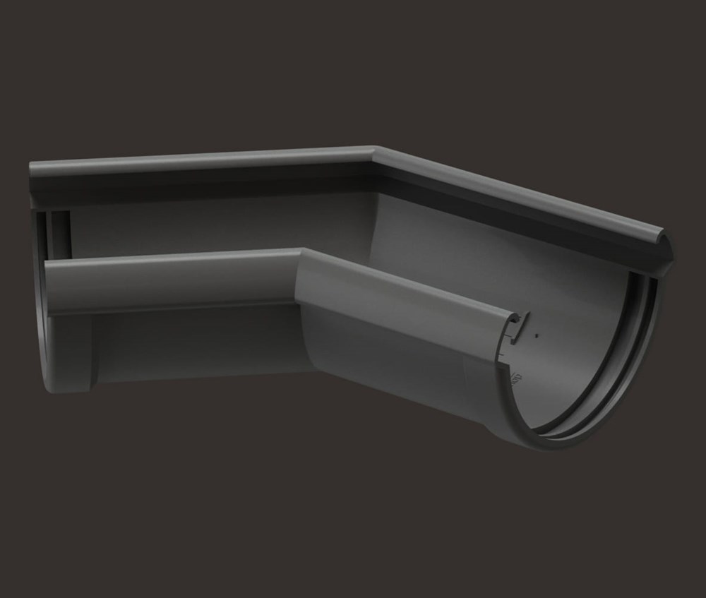 Угловые элементы устанавливаются как на внешних, так и на внутренних углах кровли и предназначены для соединения желобов.