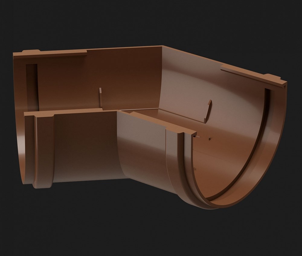 Угловые элементы устанавливаются как на внешних, так и на внутренних углах кровли и предназначены для соединения желобов.