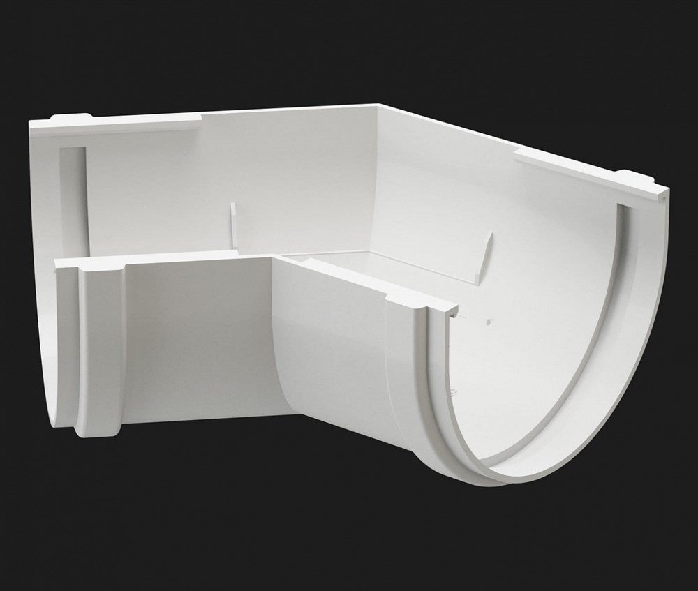 Угловые элементы устанавливаются как на внешних, так и на внутренних углах кровли и предназначены для соединения желобов.