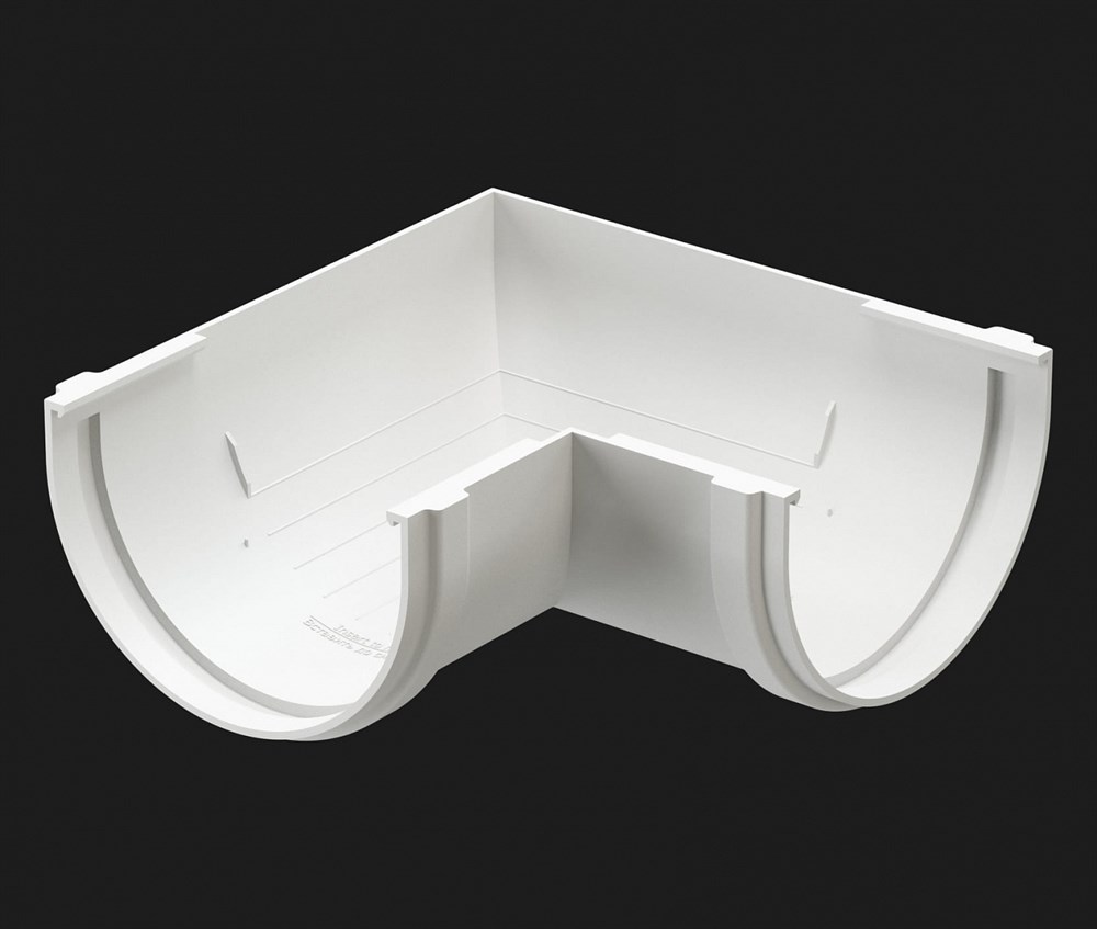 Угловые элементы устанавливаются как на внешних, так и на внутренних углах кровли и предназначены для соединения желобов.
