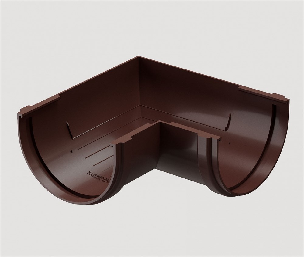 Угловые элементы устанавливаются как на внешних, так и на внутренних углах кровли и предназначены для соединения желобов.