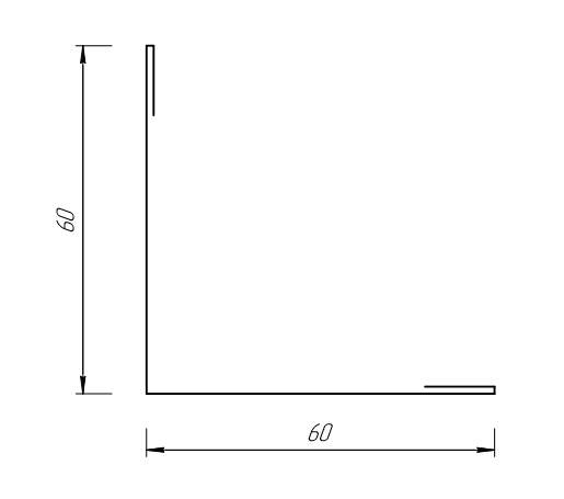 Угол простой 60*60 мм, Наружный изготавливается из листового металла толщиной 0,4 мм с полимерно-порошковым или оцинкованным покрытием. При полимерно-порошковом покрытие изделие поставляется в защитной пленке. Цвет по каталогу. Планки изготавливаются длиной от 1 м. до 3 метров с шагом в 5 см. Возможно изготовление других изделий из листового металла под Ваш размер и форму. Возможность изготовления уточняйте у менеджеров интернет-магазина.