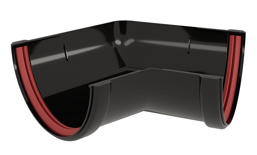 Угол желоба соединяет два желоба под углом 135°, как на внешних, так и на внутренних углах фасада.