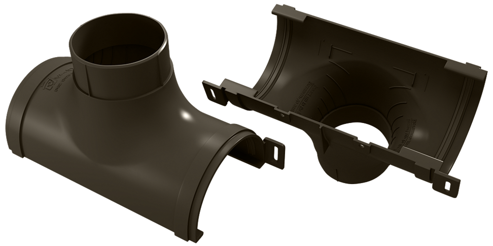 Обеспечивает слив воды из желоба в водосточную трубу. Конфигурация способствует равномерному, без переливов, стоку воды даже в моменты наибольшей интенсивности атмосферных осадков