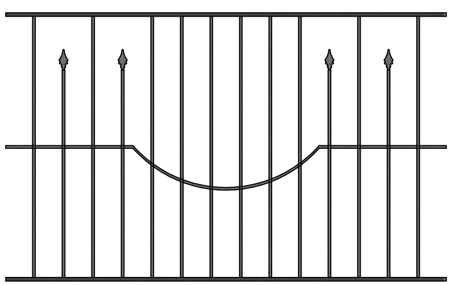 Забор из металла с элементами ковки МЗК-12 (1500*2460) — стильное решение для тех, кто ценит эстетику и безопасность. Прочные материалы и изысканный дизайн обеспечивают надежную защиту вашего участка, придавая ему уникальный шарм.